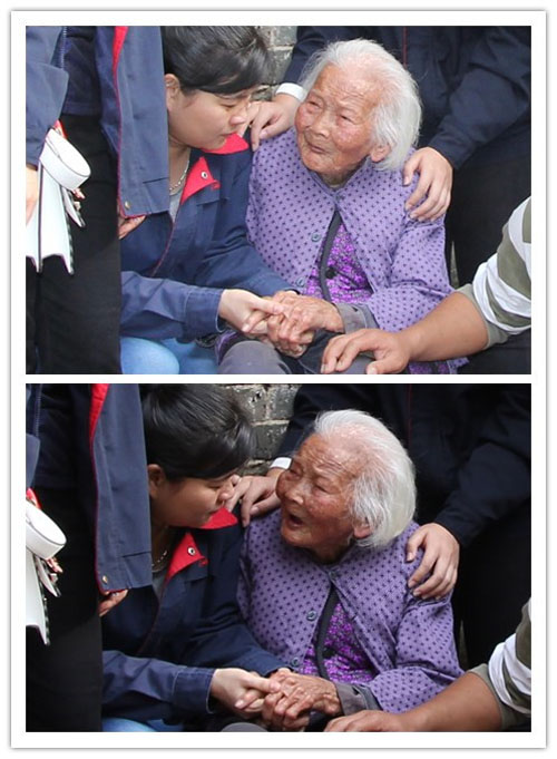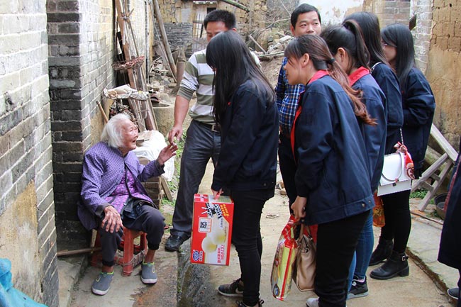 老奶奶一直握著我們的手,含著眼淚說了很多話。此情此景,很多女同事不禁流下了眼淚。臨別時候,老奶奶還為大家送上祝福,祝大家事事順利、財源廣進(jìn)。