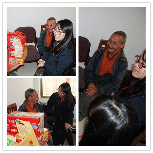大家跟老奶奶談心,了解生活中存在的困難。老人家拉著我們的手說了很多話,我們體會到獨居老人的辛酸,一起拉家常沖淡了這種孤獨寂寞。