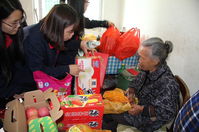 這位老爺爺,一人獨居,沒有兒女贍養(yǎng),70多歲仍外出干活維持生計。往日冷清的家,今天充滿了歡聲笑語,他開心地說笑:“這么多禮品還有過年利是,今天過節(jié)啦!”