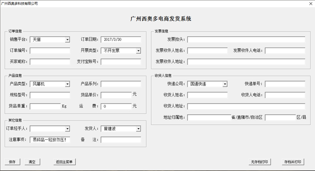 在該系統(tǒng)輸入相關(guān)發(fā)貨信息,就能同時自動打印“快遞單”、“包裝箱標(biāo)貼”,而且數(shù)據(jù)自動導(dǎo)入數(shù)據(jù)庫。