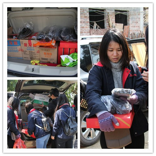 車(chē)上載著米油、雞蛋、肉腸、棉衣棉褲棉鞋、浴巾三件套等過(guò)冬物資,準(zhǔn)備捐助給孤寡老人和貧困家庭。