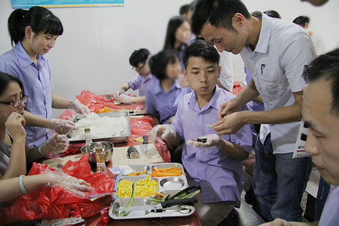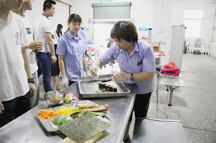 國(guó)外銷售部、人力資源部、財(cái)務(wù)部的美眉們心靈手巧,一個(gè)個(gè)精致的壽司首秀閃亮登場(chǎng)。