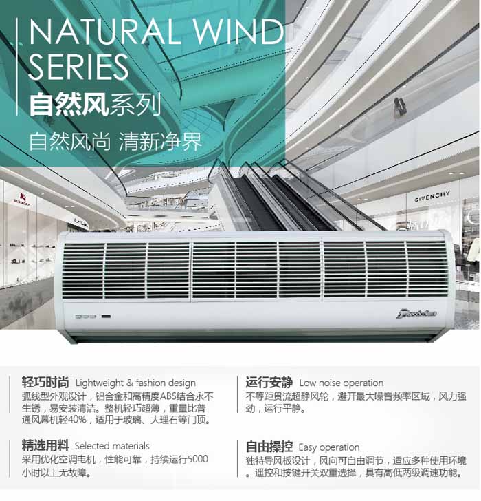 風(fēng)幕機(jī)廣泛運(yùn)用在面包店、飲品店、餐廳、酒店、超市、商城等場所,以保持室內(nèi)干凈衛(wèi)生的環(huán)境,同時(shí)為顧客營造了清新舒適的環(huán)境。
