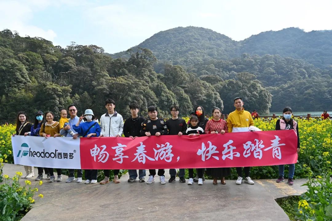 湖光山色,鳥語花香,空氣清新怡人。大家快樂踏青,增進(jìn)情誼,在春光旖旎中合影留念。