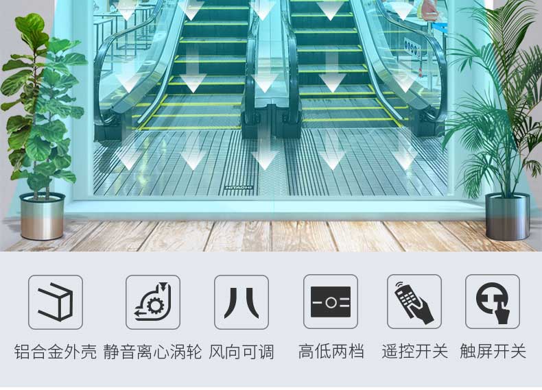 減少室內(nèi)冷氣外流,節(jié)省空調(diào)耗電,適用于需不斷開關(guān)門的餐廳、商店等場所。夏天走進(jìn)各種開設(shè)冷氣的場所,入口處清涼的強(qiáng)風(fēng)讓顧客頓感涼爽愉悅。