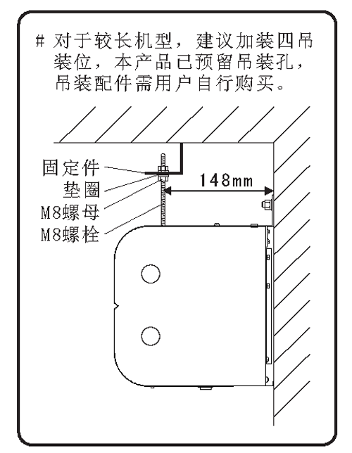 5用戶需自購相關(guān)安裝配件,其強(qiáng)度必須能承受本產(chǎn)品重量。